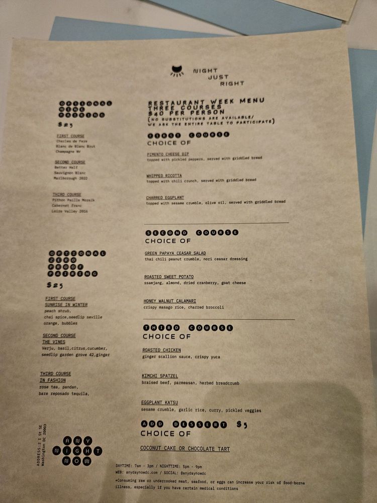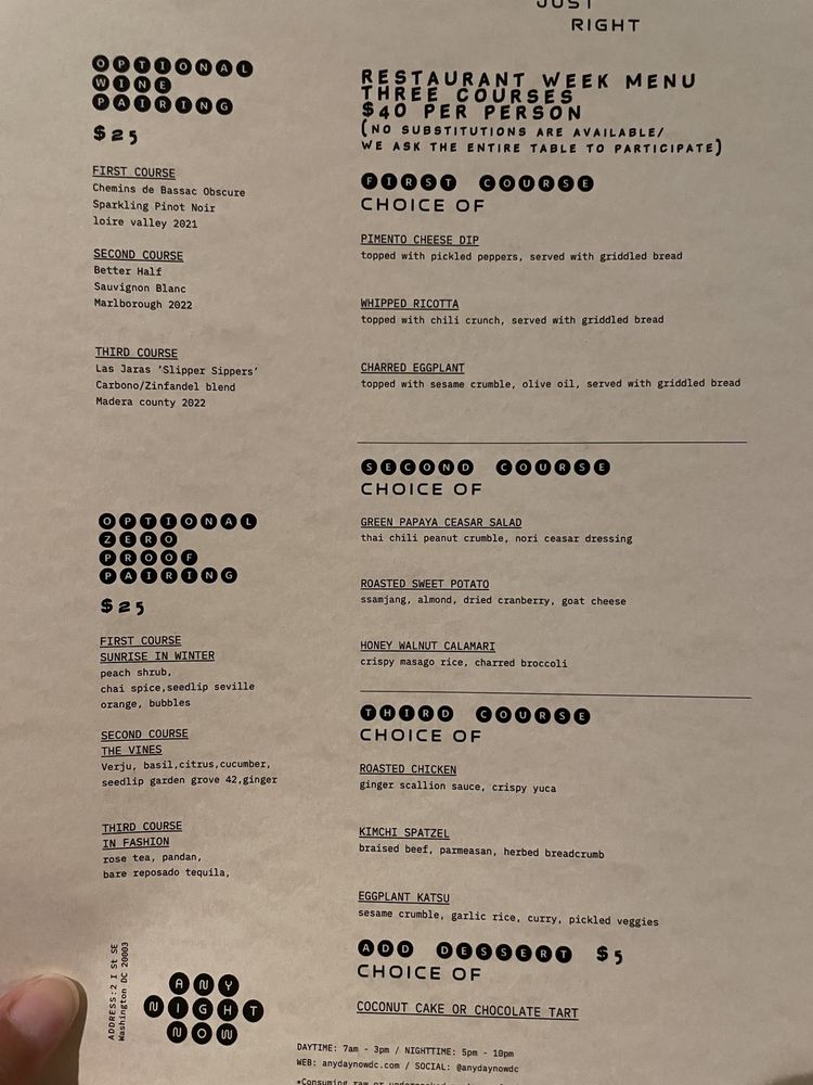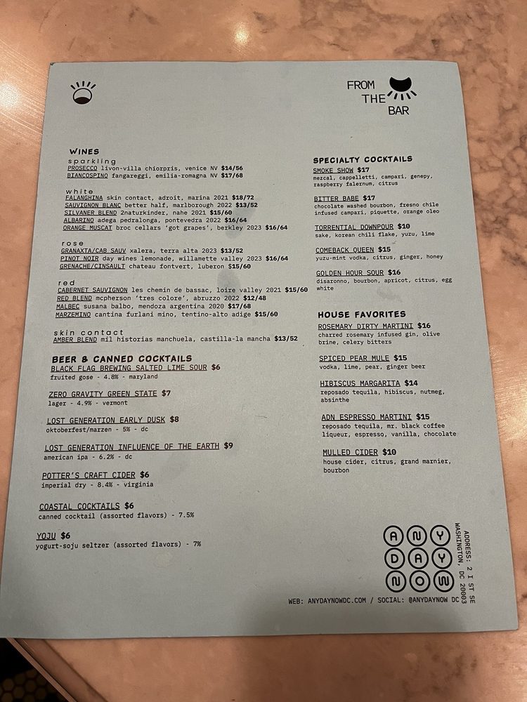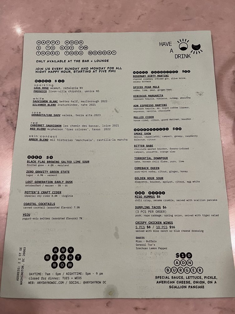 Any Day Now Menu